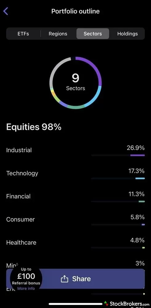 InvestEngine specialises in ETFs, a type of low-cost investment fund allowing you to invest in a wide range of shares, bonds, gold, and more. InvestEngine does not charge any account fees for DIY investors, but there is a small 0.25% charge for its managed funds.